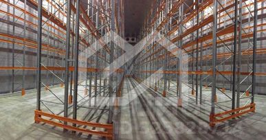 Высокие потолки под стеллажи (установлены) и спецтехнику.