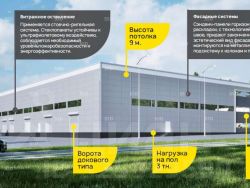 Общая площадь объекта 6000м2. Высота потолков 9 метров. Мощность 150 кВт с возможностью увеличения.