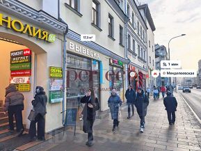 Объект расположен на первом этаже, на первой линии. В шаговой доступности от ст.метро "Менделеевская" и "Новослободская". Интенсивные автомобильный и пешеходный потоки.