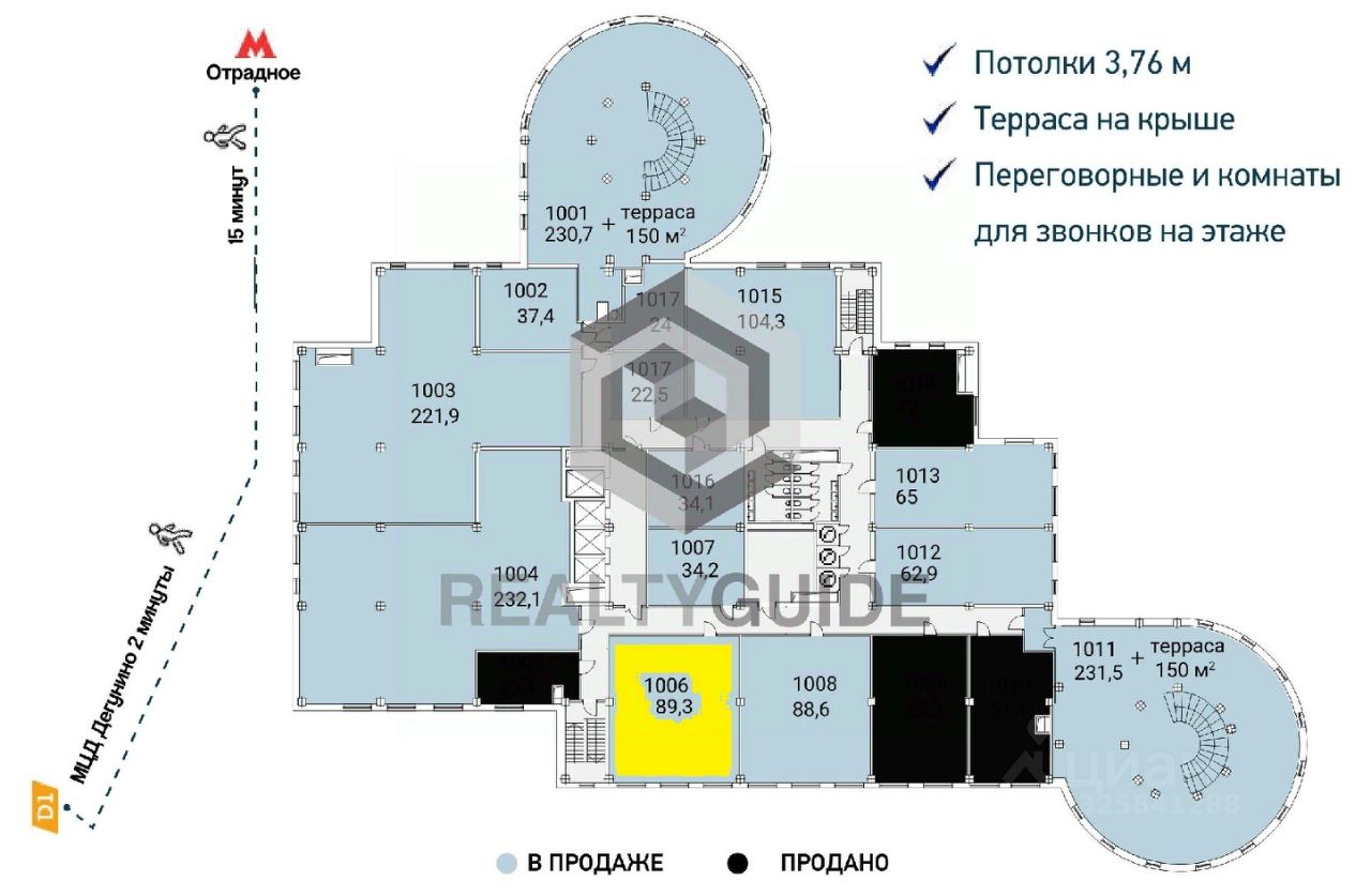 Предлагается к продаже офисное помещение общей площадью 89.3 м2, расположенное на десятом этаже многофункционального комплекса нового индустриального типа.
