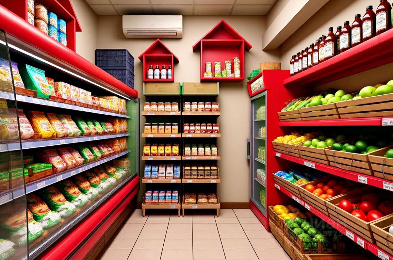 Продается помещение, 80 кв.м, на 1м этаже. В данный момент работает магазин продуктов.