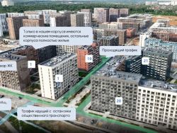 Корпус 23 расположен на центральном перекрестке, рядом с остановкой общественного транспорта. Все квартиры в ЖК с отделкой. ЖК строят в 24 км к юго-западу от МКАД и в 4 км от аэропорта. Первые корпуса сдали в марте 2023 года, а полностью проект будет завершён к 2031-му.Помещение находится на 1й линии, пешеходная зона/основная пешеходная тропа, на въезде в ЖК. Расположено по пути следования жителей на самом трафиковом коридоре ЖК. Мало коммерческих помещений — в данном квартале из 6 многоквартирных