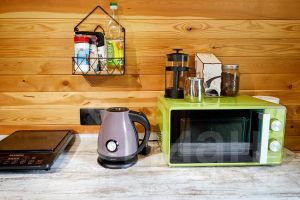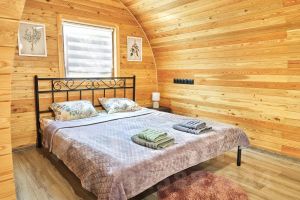 В каждом домике имеется зона спальни, зона кухни, совмещенный с/у с душевой кабиной.