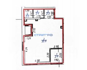Общая площадь 46,5 кв.м. Открытая планировка. Витрины.