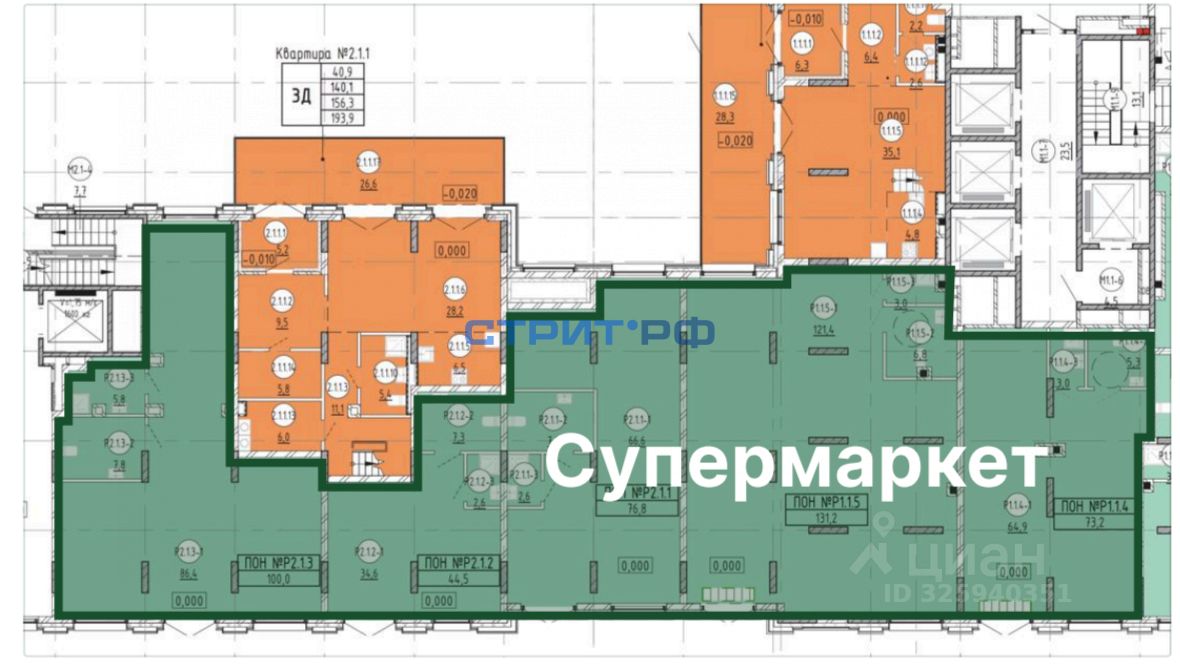 Арт. 125314434 Торговая площадь под супермаркет на 1 этаже 31 этажного ЖК "Квартал Метроном":