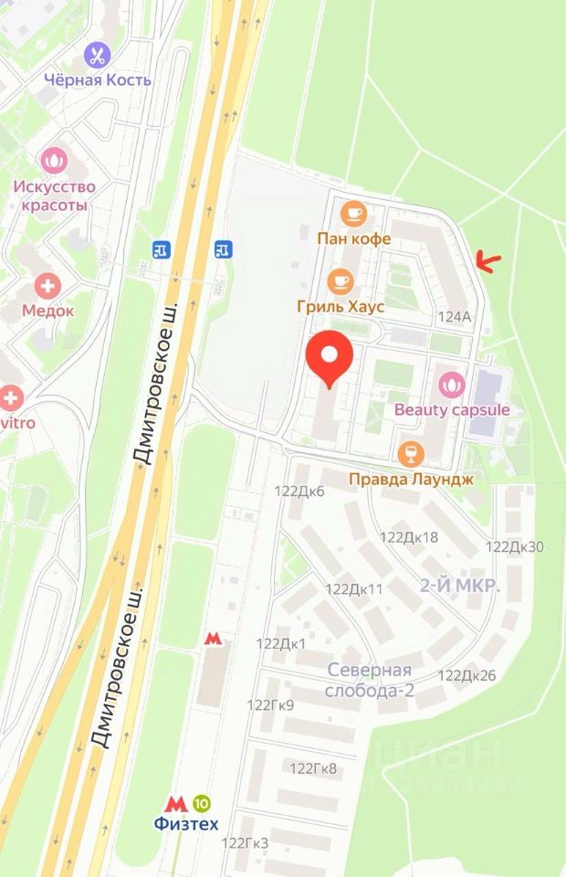 От м. Физтех 100 м.