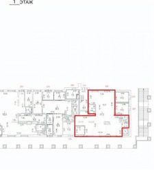 Помещение общей площадью 125,6 м² расположено на первом этаже жилого дома, на второй линии. Оно имеет открытую планировку, отдельный вход с фасада и высоту потолков 3,8 метра. Фасадная часть оборудована витринными окнами. Электрическая мощность составляет 20 кВт. Перед зданием организована парковка.