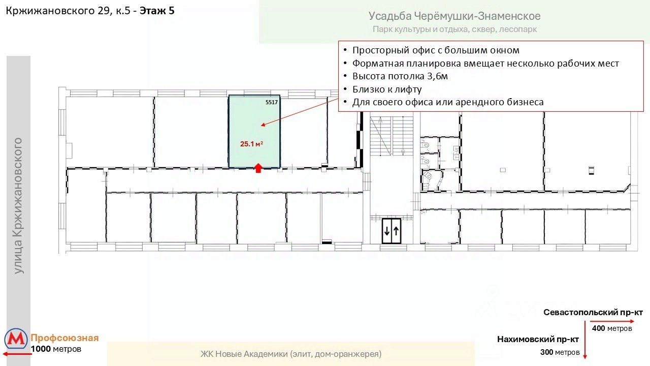 Помещение с арендатором, в бизнес-центре, в ЮЗАО, ул.Кржижановского. Плотный офисный кластер рядом с метро Профсоюзная и Нахимовский проспект.