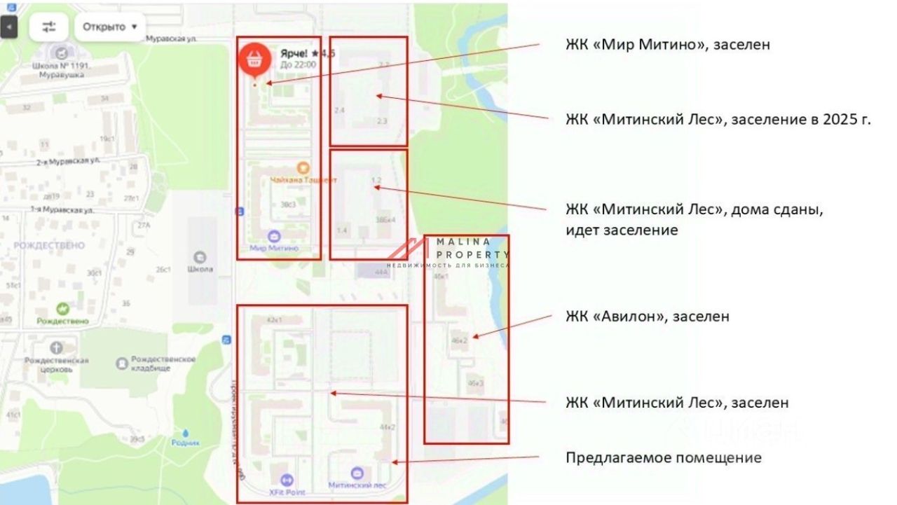 Продажа торгового помещения 194,2 м2 на ул. Муравская, д. 44 корпус 2 (20 минут пешком от метро Пятницкое шоссе).