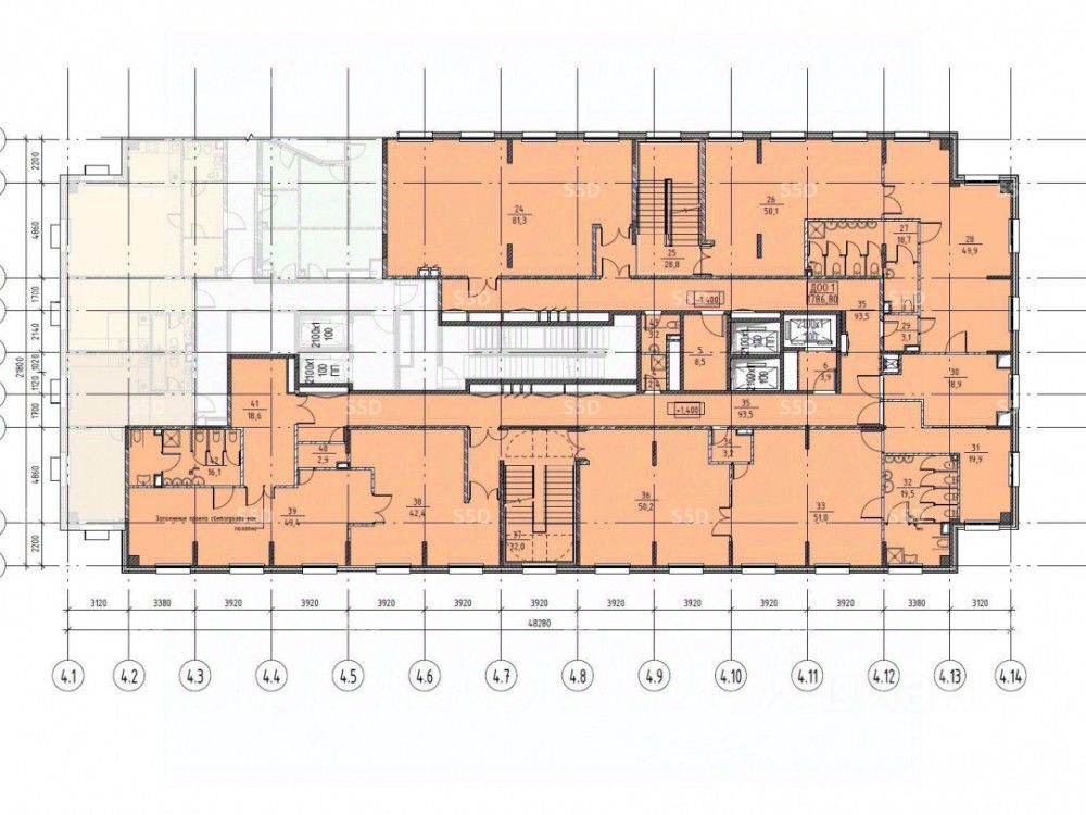 Общая площадь - 1796,8 кв.м., три этажа, количество входов - 4, имеется зона разгрузки, электрическая мощность - 0,25 на кв.м.