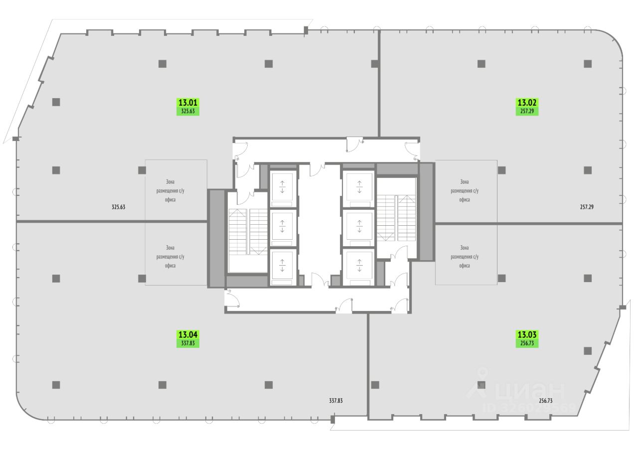 Продается офис на 13 этаже, площадью 257.29 м²