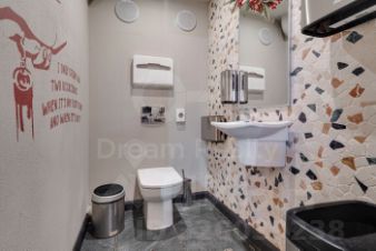 1 уровень площадью 145,5 кв.м: зал 65 кв.м, бар 16,5 кв.м, открытая кухня 17 кв.м, 2 гостевых санузла и один для персонала, кладовая и все необходимые для общепита технические помещения.