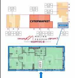 Помещение 59 м2, располагается на 1 этаже, угловая открытая планировка, отдельный вход с фасада, высота потолка 3,5 м, витринные окна по фасаду. Электрическая мощность 11 кВт. Парковка перед фасадом. Место для размещения рекламы.