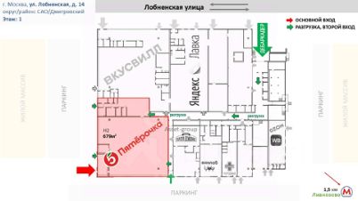 Большой паркинг рядом с входом в помещение, зона разгрузки для любого объёма транспорта.