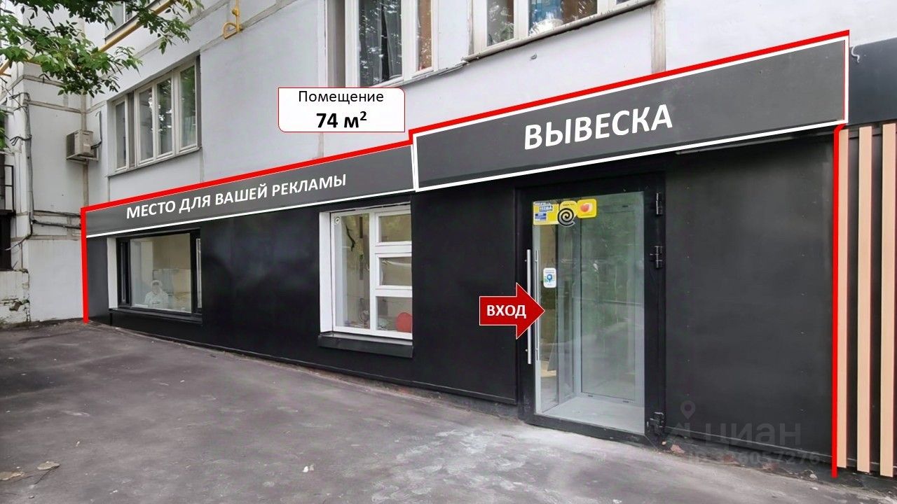 Отличный обзор витрин и места для вывесок