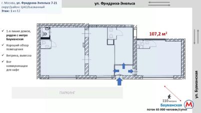 Помещение в 100 метрах от входа в метро Бауманская (пассажиропоток станции 80 000 чел/день)