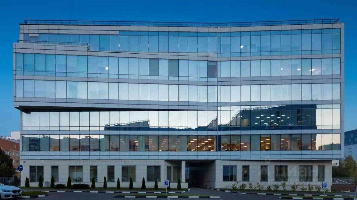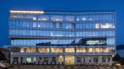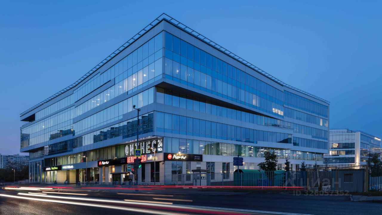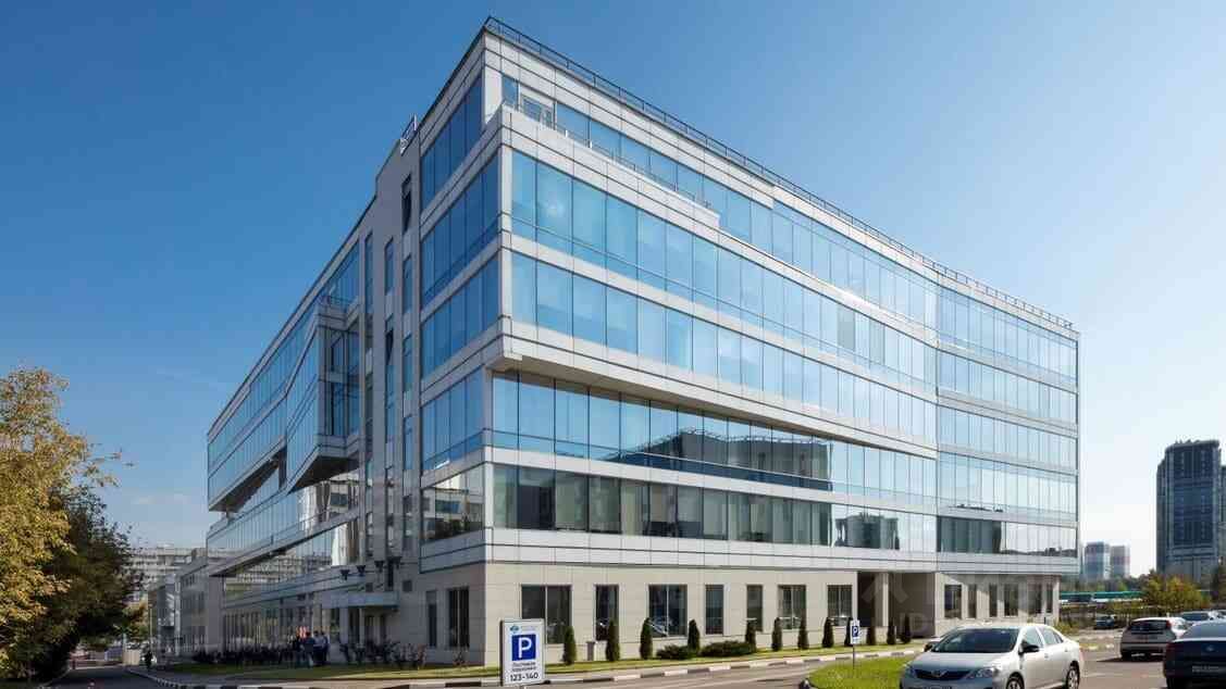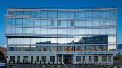 - 6-этажное здание с алюминиевыми фасадами и светоотражающим остеклением