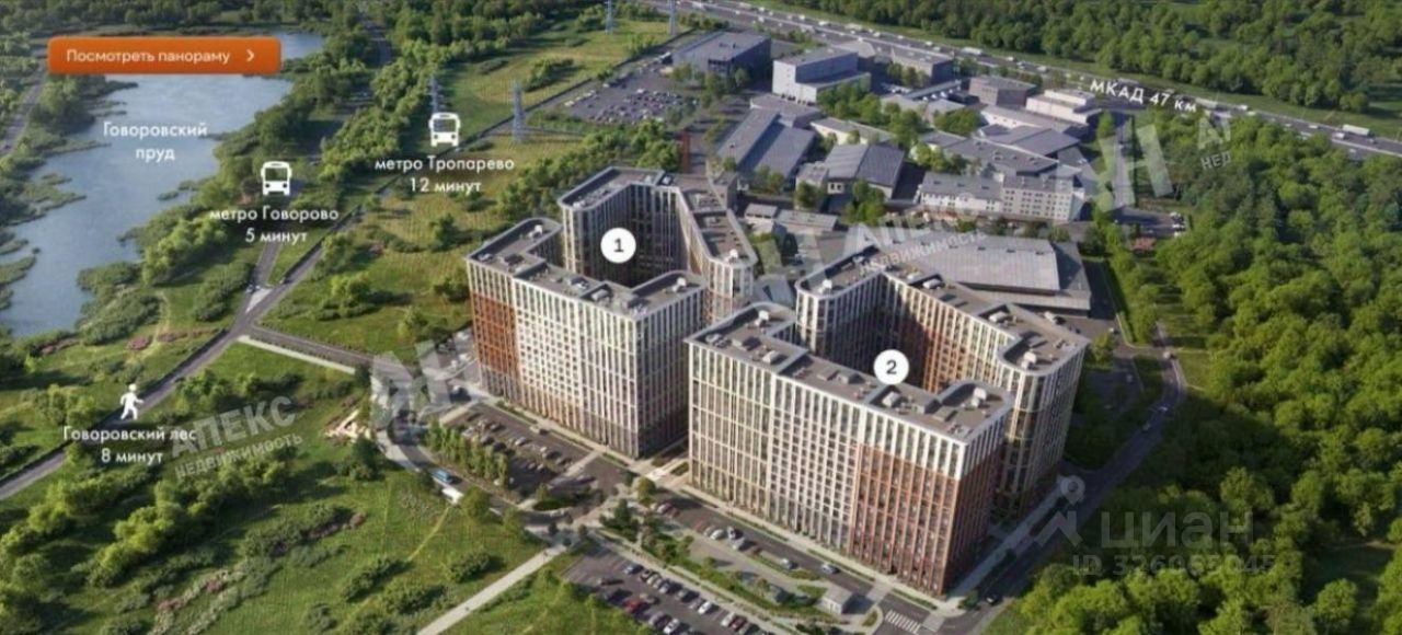 Объект расположен в Юго-Западном административном округе Москвы, в районе Солнцево на границе с Новой Москвой. Помещение находится на первом этаже с отдельным входом с улицы, на одном из основных заездов в жилой комплекс, в шаговой доступности от большой наземной парковки. Пешая доступность до станции метро "Говорово" составляет 25 минут. Комплекс включает 1700 апартаментов, сдача запланирована на первый квартал 2026 года, что обеспечивает высокую плотность будущего заселения и минимальную конкуренцию в сегменте аптек.