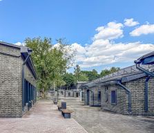 Отделка фасадов выполнена панелями с имитацией клинкерного кирпича. Дополнительно на территории организованы зоны отдыха, дополнительно имеется возможность для организации летних веранд и кафе.