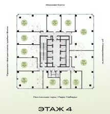 На 14-м и 15-м этажах находятся скай-офисы с высотой потолков 11,5 метров и панорамным остеклением, откуда открываются виды на Парк Победы, "Москва-Сити" и центр города.