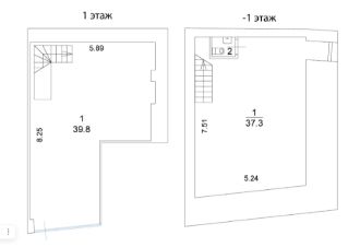 1 этаж: 39,8 м² — идеально для зала, барной стойки, витринной зоны.