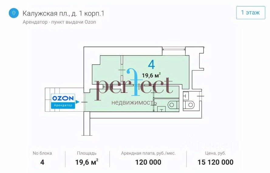 Продажа ПВЗ Озон помещение 19,6 м2 у метро Октябрьская. Калужская пл. д.1 корп.1.