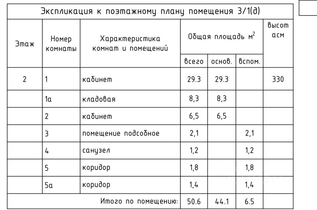 Общая площадь: 50,6 кв.м.