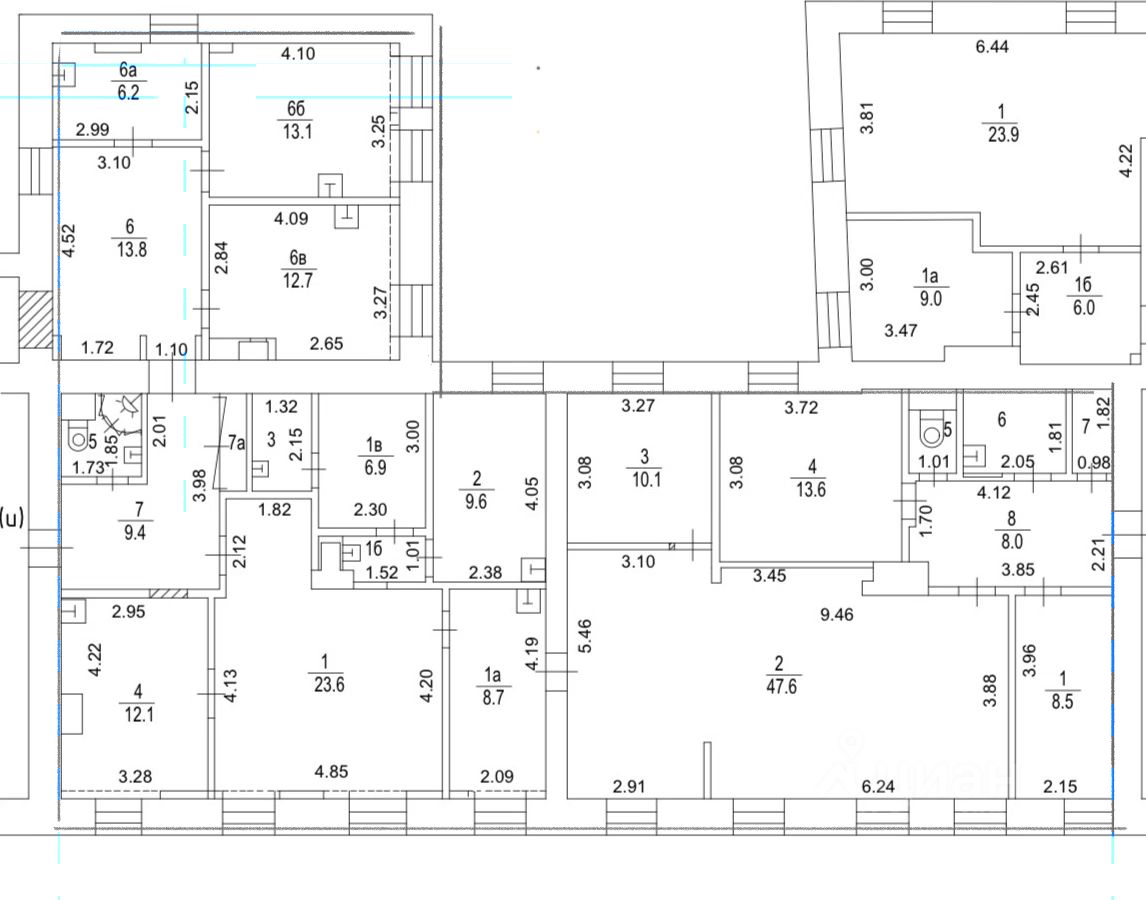 Общая площадь: 219,3 кв.м. (1 помещение 124,3 кв.м. и 2 помещение 95 кв. м.).