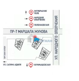 Метро: Народное Ополчение (10 мин.), Бульвар Генерала Карбышева (15 мин.), Мнёвники (3 мин.),