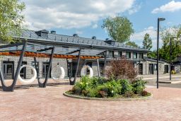Отделка фасадов выполнена панелями с имитацией клинкерного кирпича. Дополнительно на территории организованы зоны отдыха, также дополнительно имеется возможность для организации летних веранд и кафе.