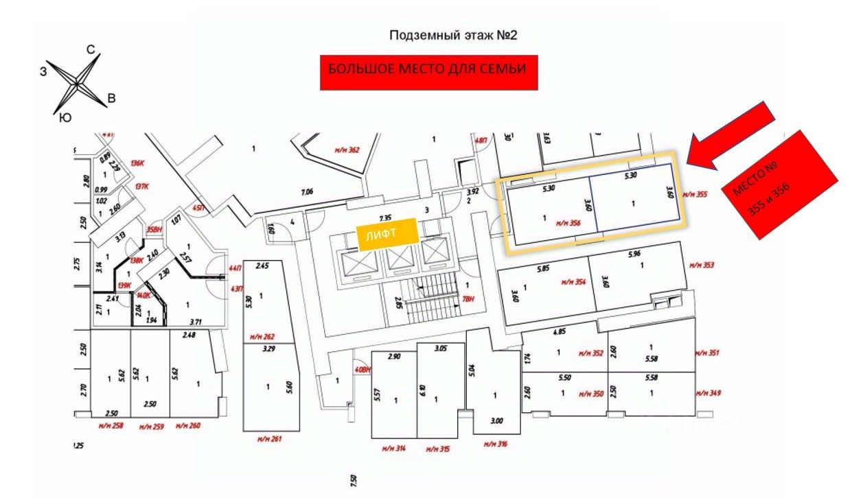 ЖК Архитектор, этаж -2, Машино-место 335, 336 (Большое семейное). Площадь: 38,2 кв.м.