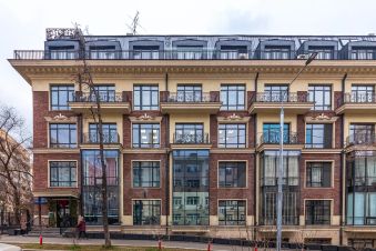 Новый, малоэтажный дом в тихом, камерном переулке, огромные окна выходят в утопающий в зелени двор, парадная с библиотекой, деревянные панели, хрустальные люстры и кирпичная кладка, обрамленная белоснежной штукатуркой и лепниной. Вечная классика в исполнении со всеми передовыми инженерными решениями.