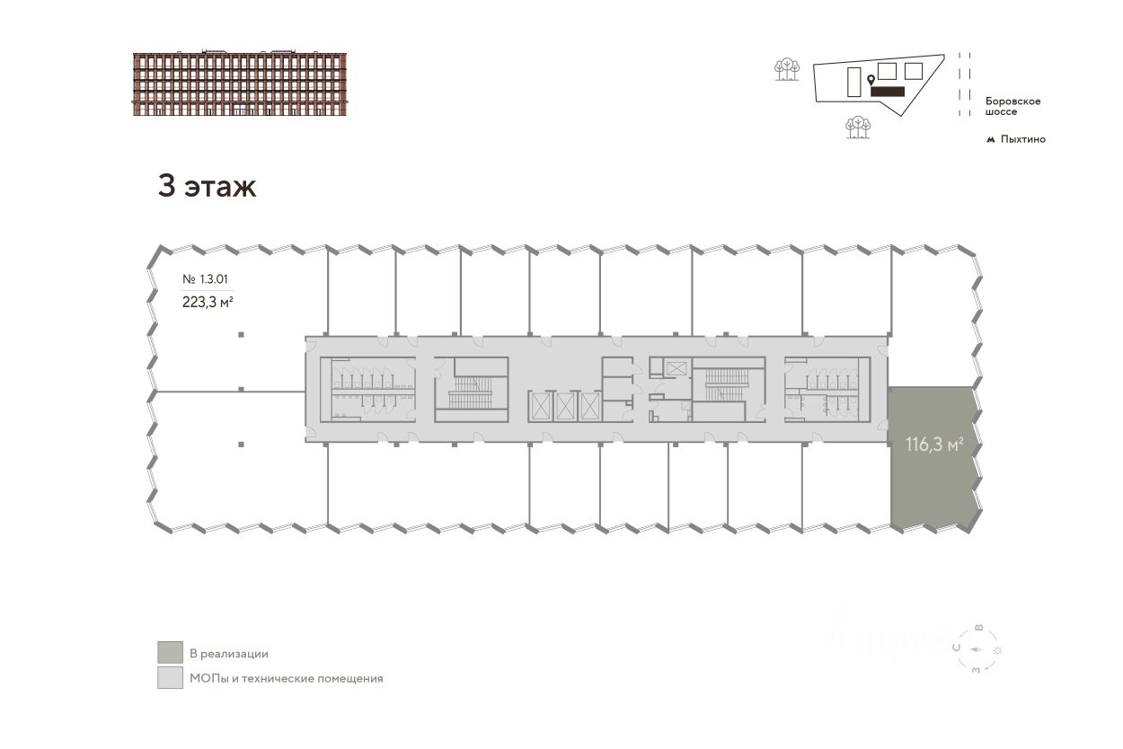 - Офисное помещение 116,30 м² на 3 этаже (корпус 1)