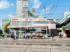 -рядом остановка общественного транспорта и пешеходный переход.