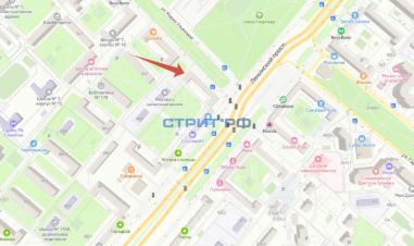 Рядом пешеходный переход и остановка общественного транспорта.