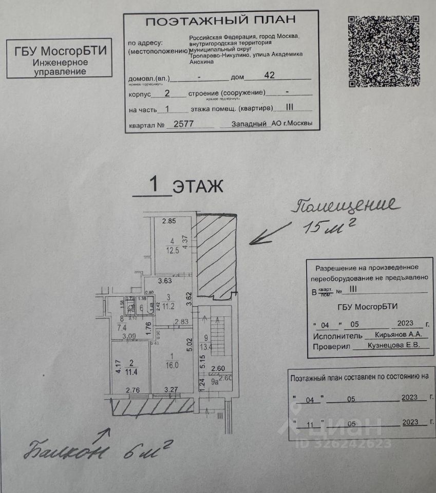 +21 КВ.М БЕСПЛАТНО: дополнительно к основной площади идёт помещение 15 кв.м и балкон 7 кв.м (не учтены в стоимости!).