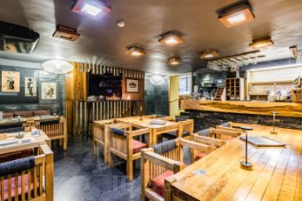 Двухуровневое пространство ресторана Сейджи в Москве включает в себя три зала и оформлено в аутентичном японском стиле, в отделке преобладает дерево. За столиками на специальных подиумах можно посидеть без обуви.