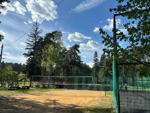 На участке расположены четыре дачных дома щитовой конструкции, облицованные кирпичом, с металлической кровлей. Площади домов составляют: 99,7 кв.м, 46,7 кв.м, 44 кв.м и 48,7 кв.м. Территория участка просторная и позволяет реализовать различные варианты использования - от семейной загородной резиденции до гостевого или дачного комплекса.