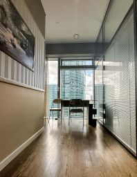 Офисное помещение площадью 219 кв. м расположено на 23-м этаже современного монолитного здания, построенного в 2009 году. Высота потолков 3,75 м создаёт ощущение простора и свободы. Евроремонт, мебель, современные системы кондиционирования, вентиляции и пожарной сигнализации обеспечивают комфорт и безопасность.