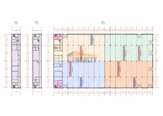 - Административно-бытовое трехэтажное помещение (Состоит из офисов, бытовых комнат, душевых/санузлов + столовая с кухней). Каждый этаж 60х10м.