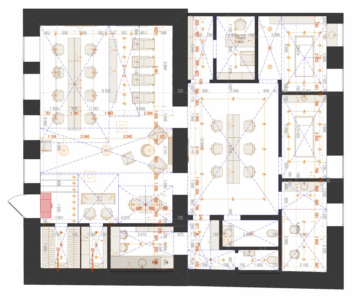Помещение оснащено современными инженерными системами: канальное кондиционирование, приточной-вытяжная вентиляция, дизайнерское освещение, водонагреватель на 120 л, видеонаблюдение, датчики движения.