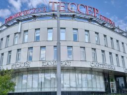 На кровле находится брендированная рекламная конструкция. Видимость ее за несколько километров, которая придает зданию дополнительную уникальность.
