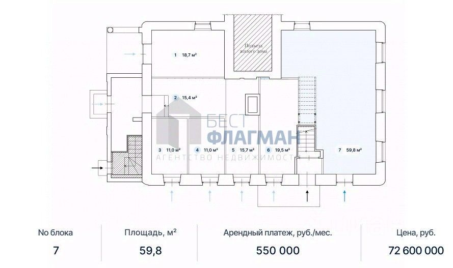 Продажа помещения свободного назначения 59,8 кв.м.