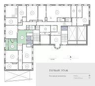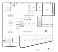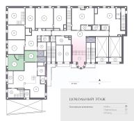 Из-за рельефа местности, цокольный этаж фактически является первым уровнем здания. На цокольном этаже располагаются центральные входы в здание. Доступ в подземный паркинг осуществляется на специальных лифтах (платформах). Один из трех пассажирских лифтов спускается в паркинг. Все лифты на чердак не ходят. Чердак не арендопригодный, на большей части чердака (за исключением 110 м²) располагается инженерное оборудование, на меньшей части (110 м²) расположилась дополнительная переговорка и комната для занятий спортом.