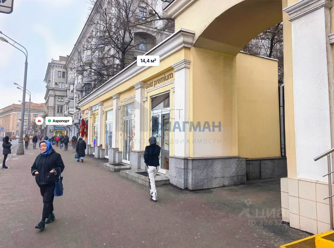Ленинградский проспект, САО, г. Москва. Продажа помещений у метро. Объект расположен на первом этаже рядом с метро "Аэропорт" — менее 1 минуты пешком. Сверхинтенсивные автомобильный и пешеходный трафики. В непосредственной близости выход из метро, подземный пешеходный переход и остановка общественного транспорта. Высокий рекламный потенциал и места для размещения вывесок.