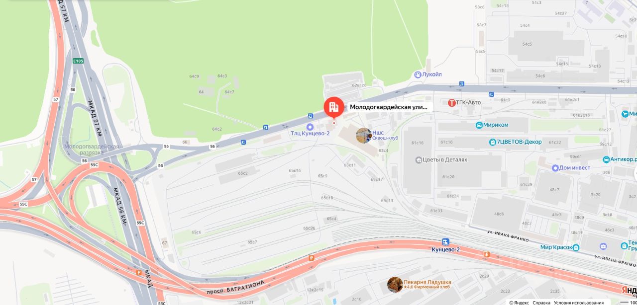 Здание расположено в районе Кунцево с хорошей развитой инфраструктурой, ближайшее окружение: промышленная застройка. Удобный въезд на территорию с МКАД, а также с проспекта Багратиона.