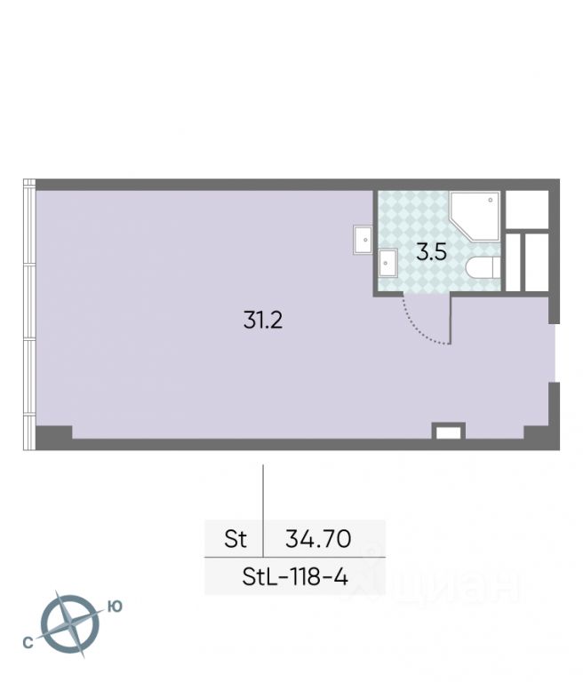 Площадь34,7 м²