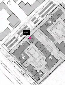 Угловое помещение у входа в арку, рядом с торговым стилобатом.