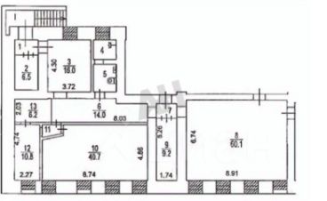 Цоколь с окнами, отдельный вход со двора, смешанная планировка, хороший ремонт. Высота потолков 2.8 м. Электрическая мощность 15 кВт.