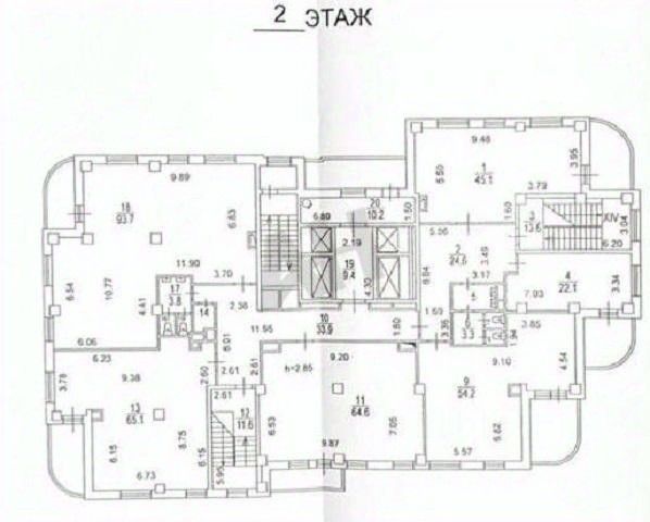 Первый (117 кв.м) и второй (630 кв.м) 24-х этажного жилого дома, 2008 года постройки.